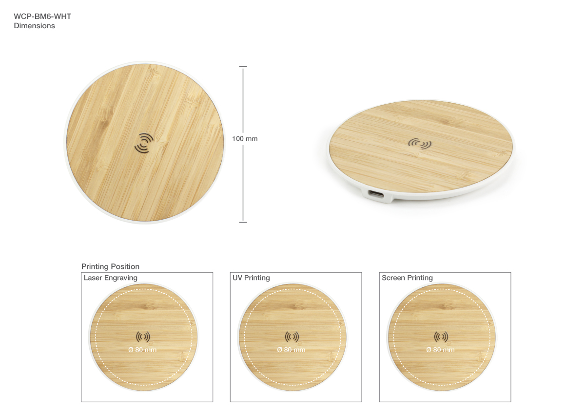 - Inside the box : (1) bamboo charging pad, (2) user manual (3) 100CM Type-C charging cable.